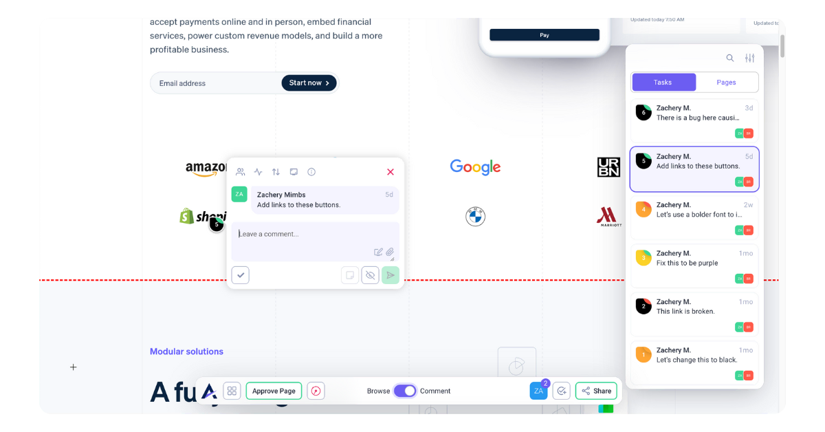 - Stakeholders can click directly on elements of a design or web page to leave comments. This pinpoint feedback helps designers understand exactly what needs to change, eliminating guesswork.