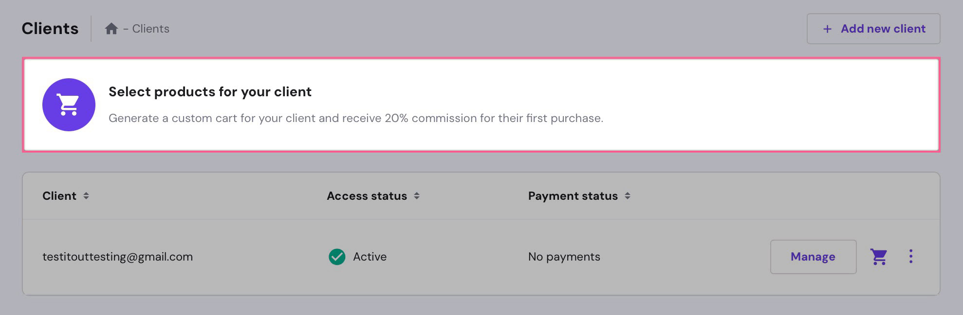 If your client isn’t a Hostinger user, or you want to buy another Hostinger plan for them, you can make the purchase correctly within the Pro Panel and earn commissions. 💰