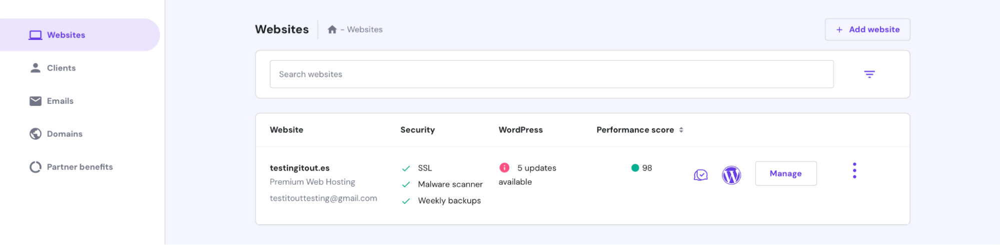 Each managed account is – in simple terms – a sub-account of your Hostinger account that will allow you to view everything related to that specific client or company in a single dashboard.