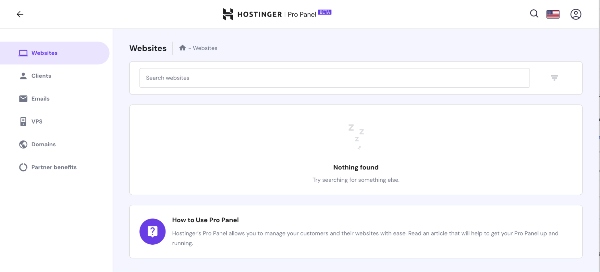 The Hostinger Pro Panel is a dedicated dashboard that is a part of Hostinger’s hPanel that’s specifically designed to suit the use-case of web design freelancers and agencies that own or manage multiple websites for clients.