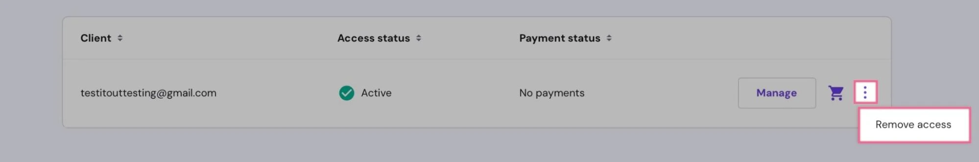 After a client grants you access, you will be able to manage your client’s account. To remove a client, click on the three dots and select ‘Remove access’.