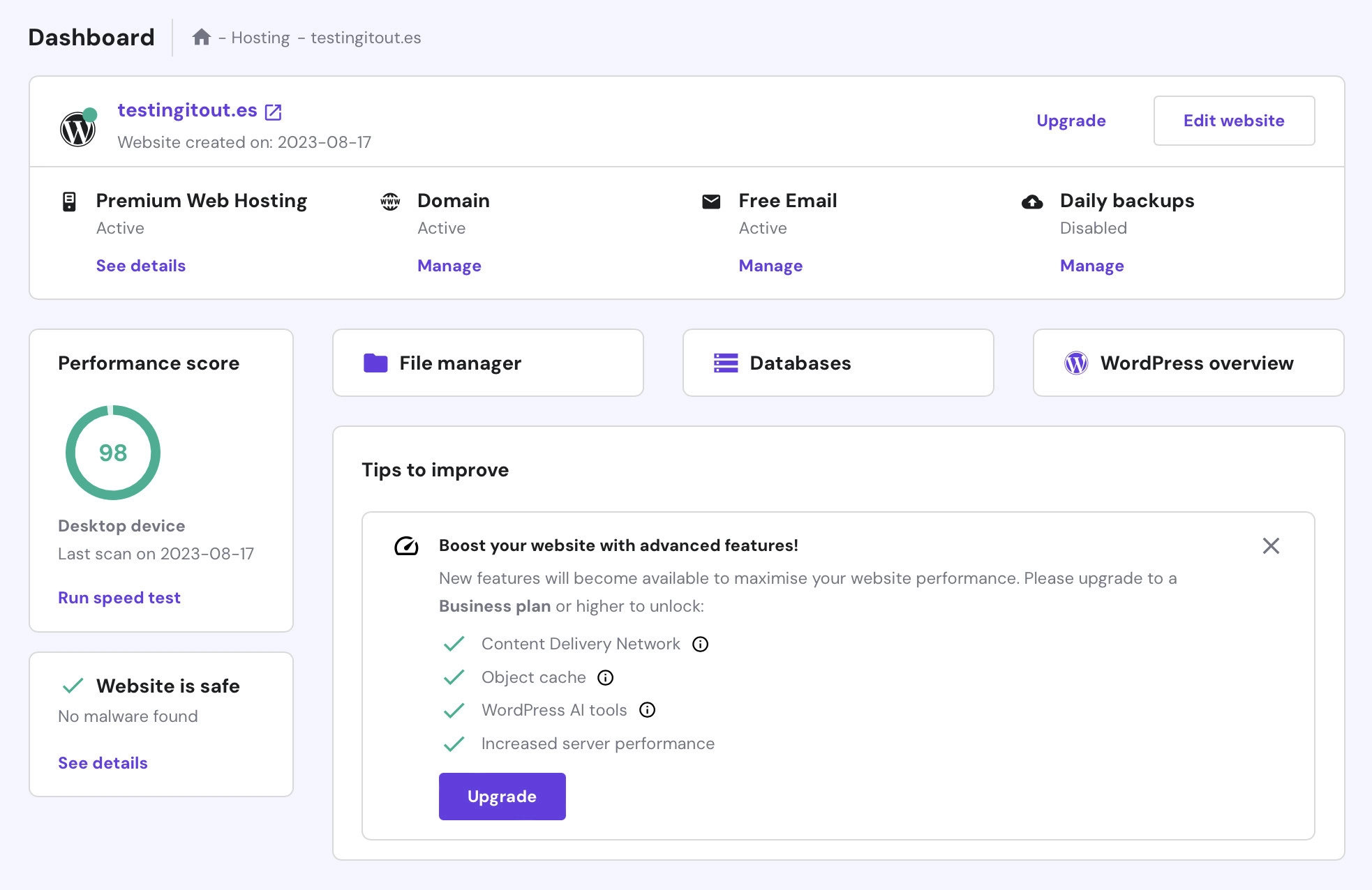 It’s an all-in-one dashboard, designed to centralize hosting and website management.