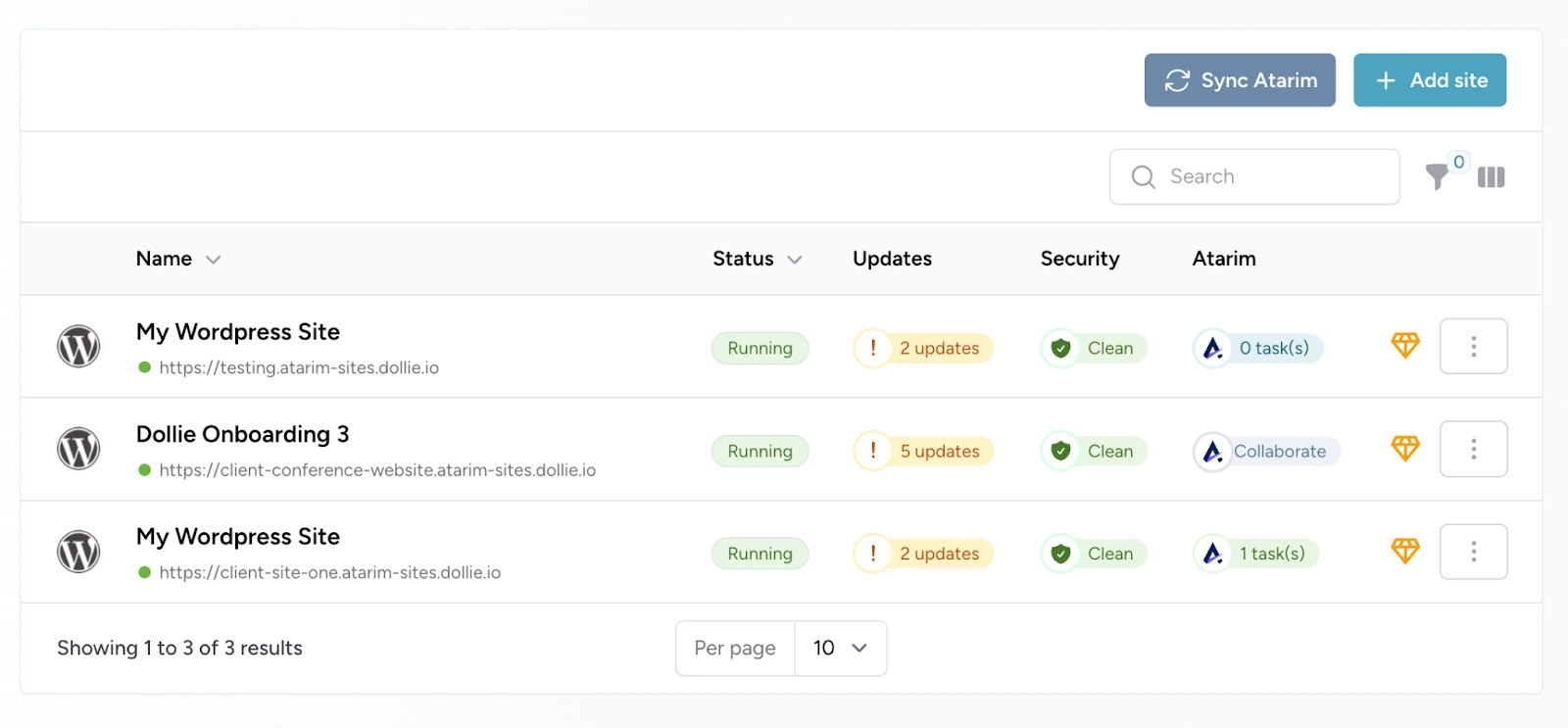 - Easily view tasks on all of your sites at a glance directly in your Dollie dashboard