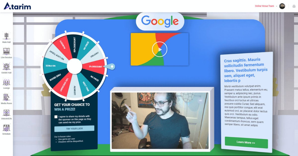 Every sponsor gets their own booth on the platform, and they can customize it themselves. They pick their brand colors, upload their logo, set up their content. No one from our team needs to touch it.