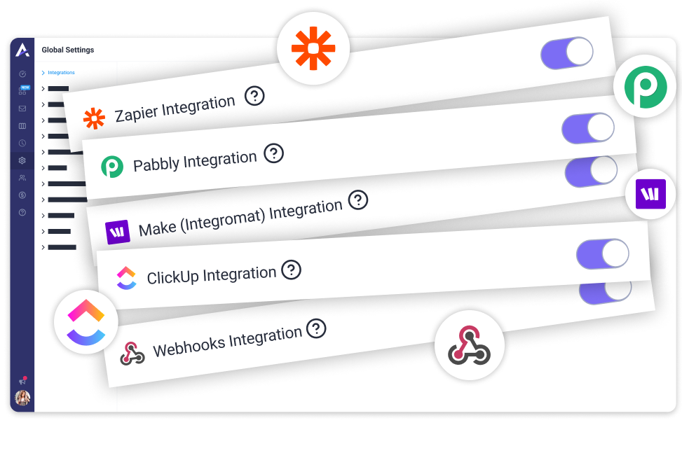 Powered by Zapier, Pabbly, Make, and Webhooks – we integrate with virtually any platform that supports these methods of integration out of the box.