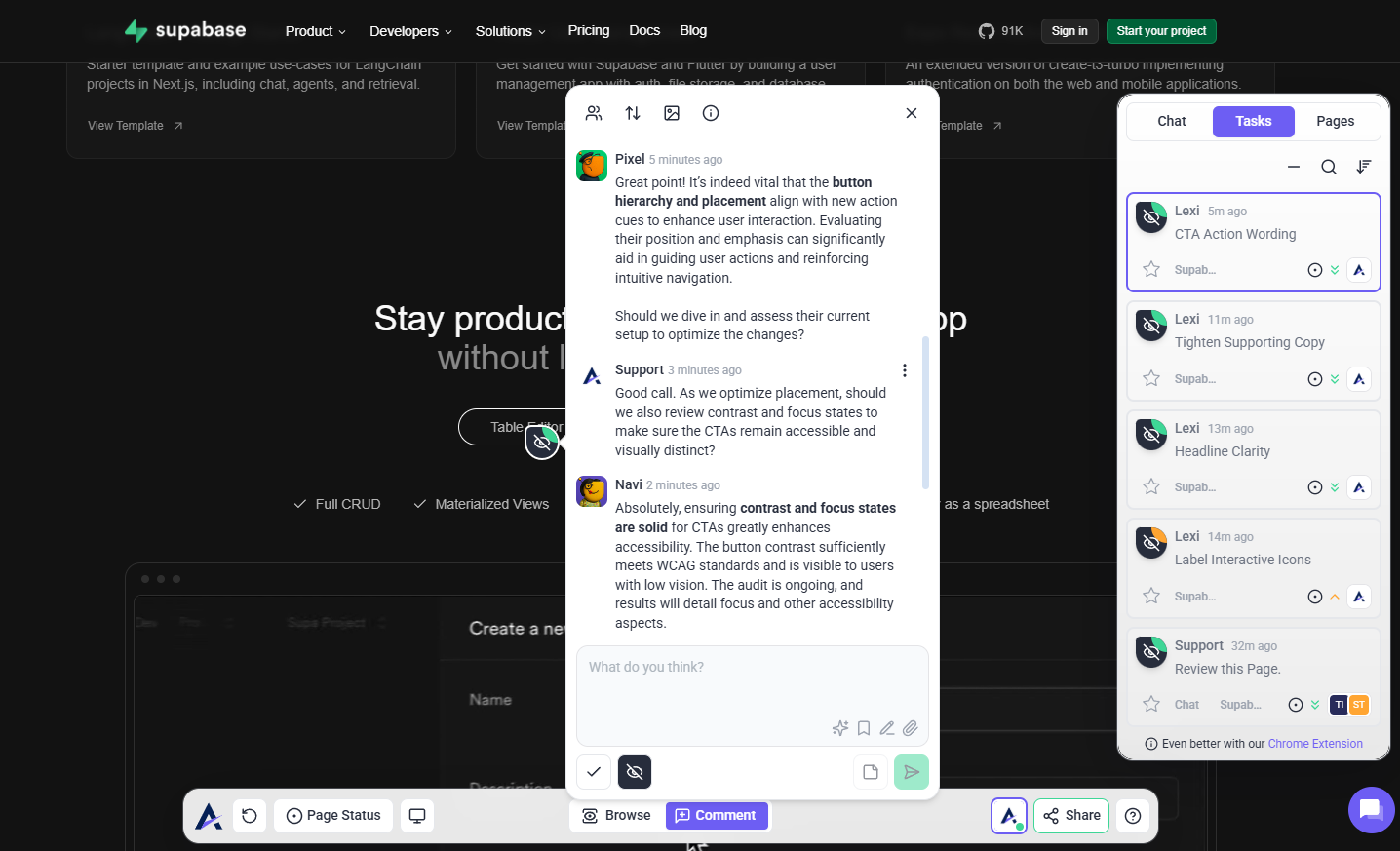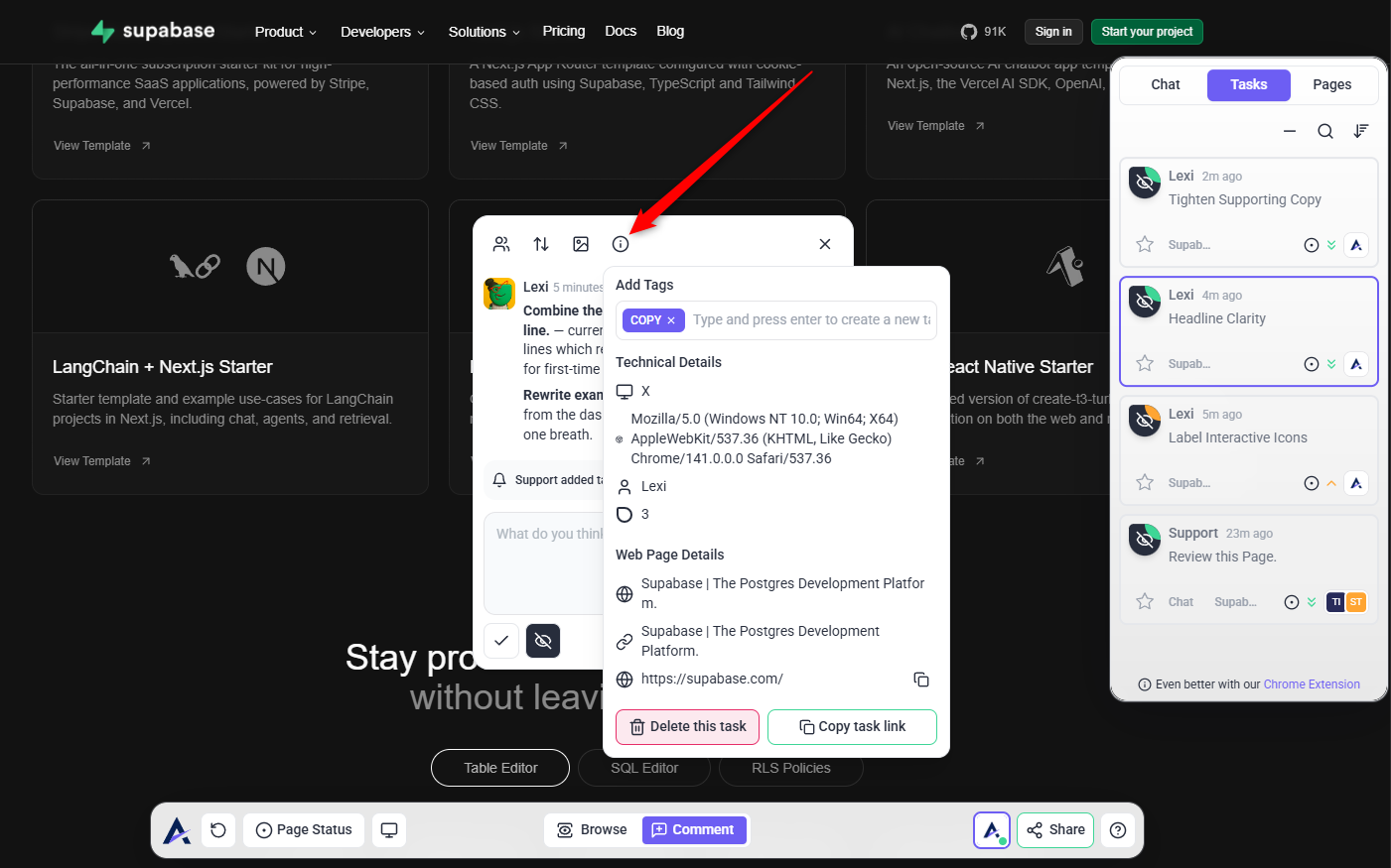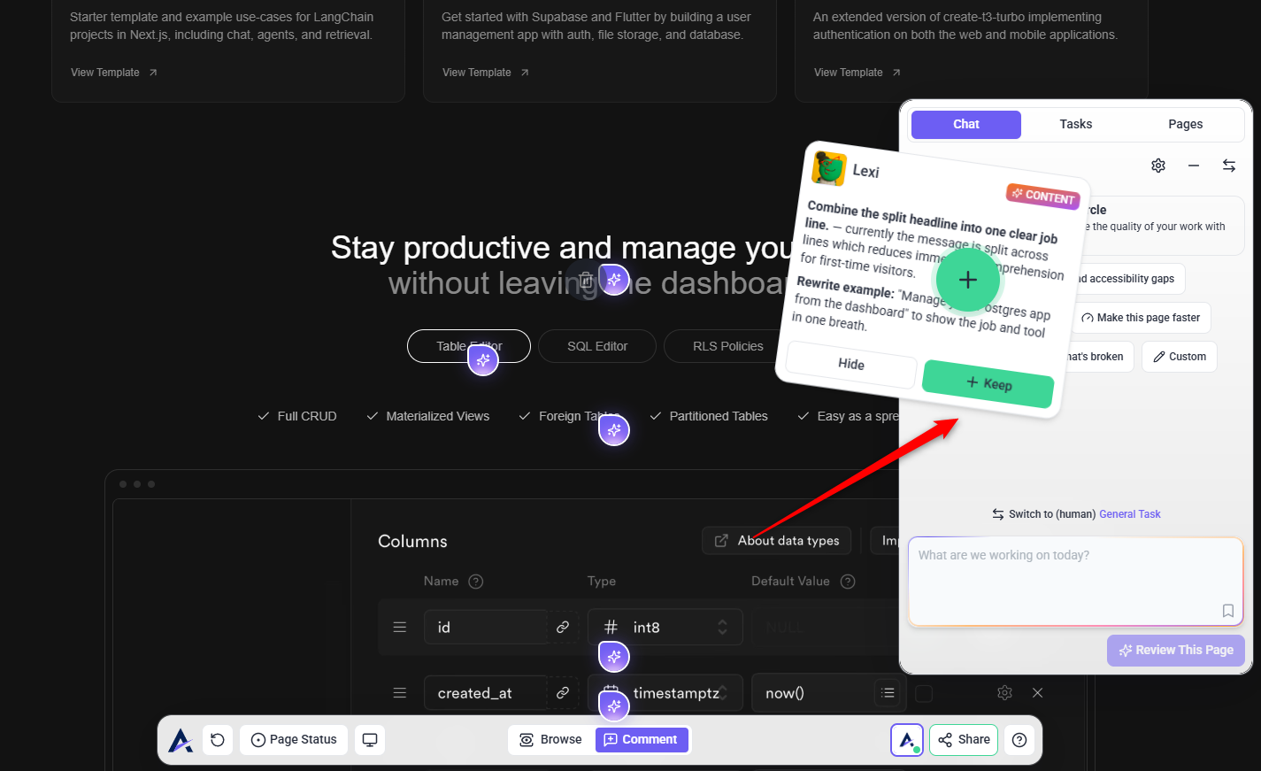 Once Lexi’s stickers appear on the page, you’ll need to decide what to do with each one. Think of this as turning her feedback into action (or discarding it if it’s not relevant). Every suggestion can either be kept to use or hidden to dismiss, and important ones can also be converted into tasks for your team.