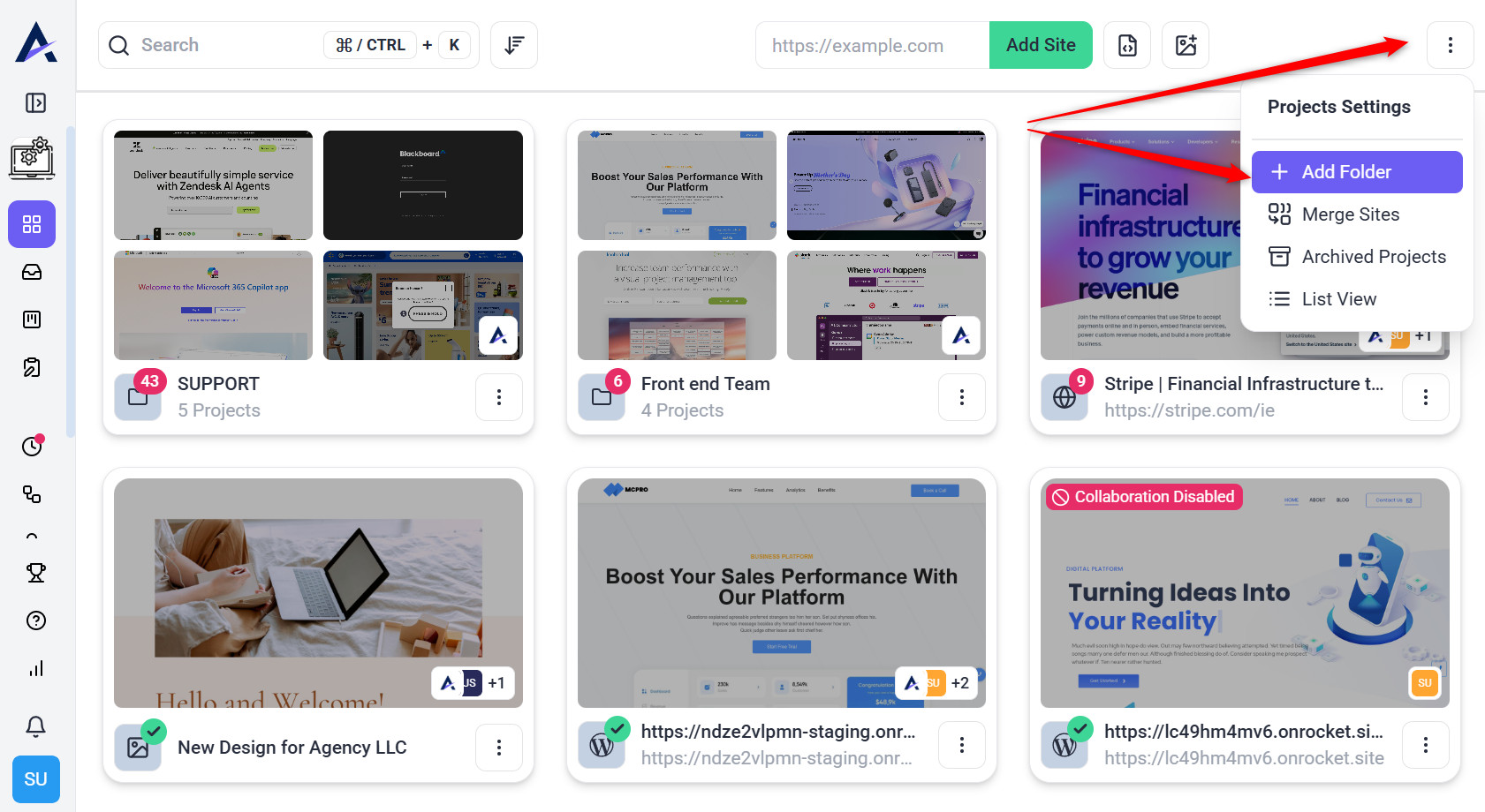 Recommendation: Bookmark the Projects page for quick access when switching between multiple websites.