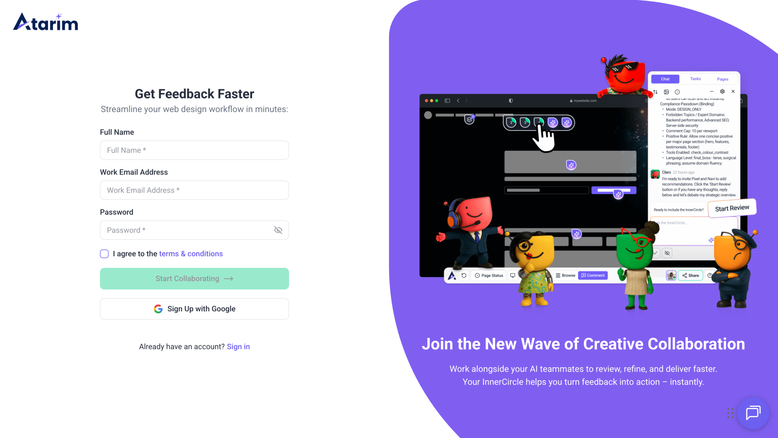 - Navigate to Atarim’s Sign-up page.