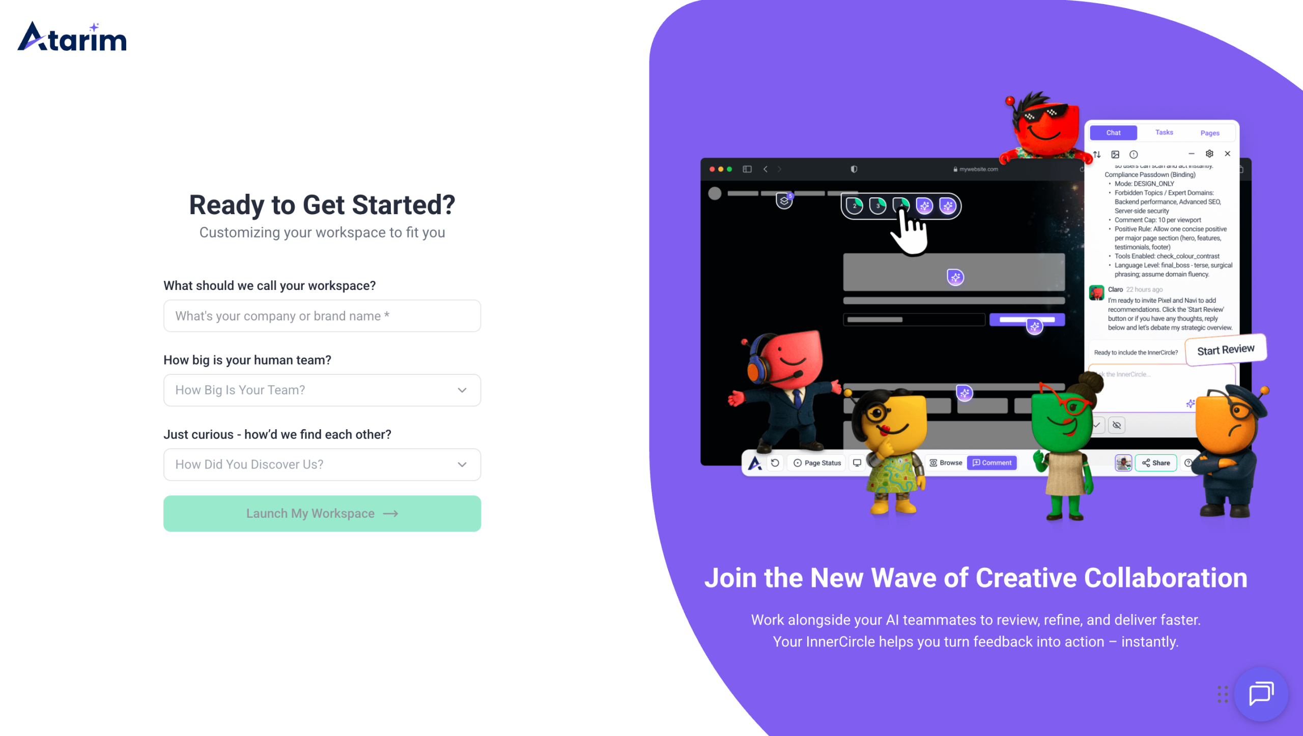 Before you can start managing projects or collaborating, you need to set up your Atarim account.