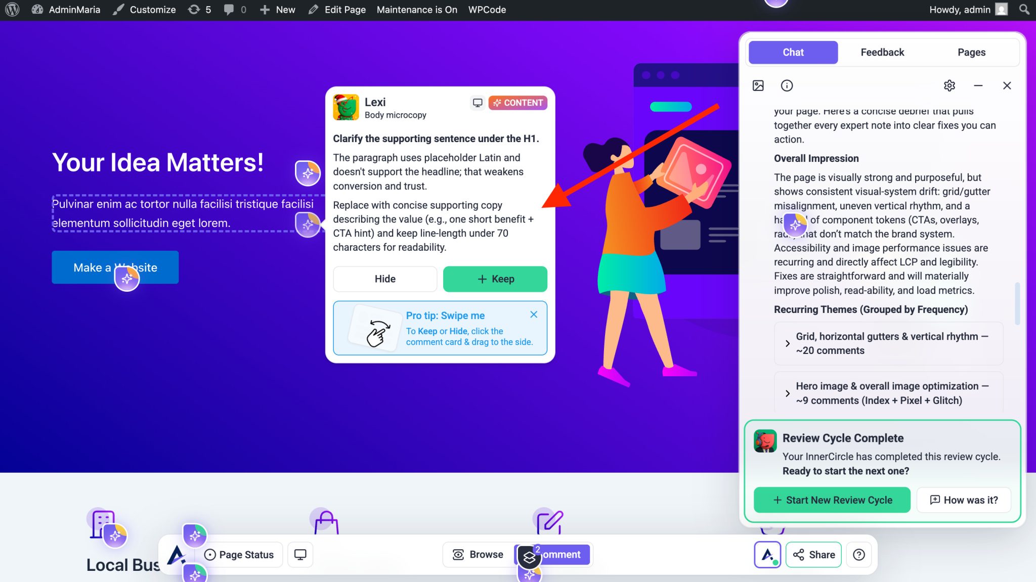 AI works with full page context, including layout, spacing, copy, visuals, and structure.
