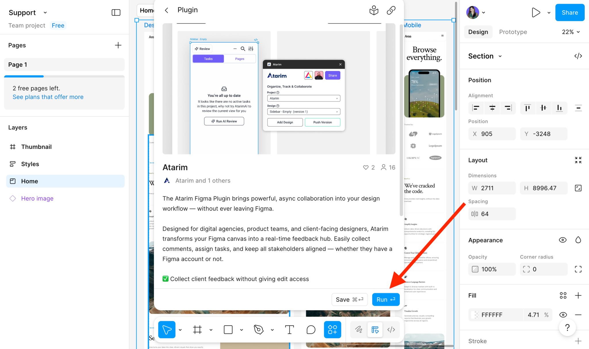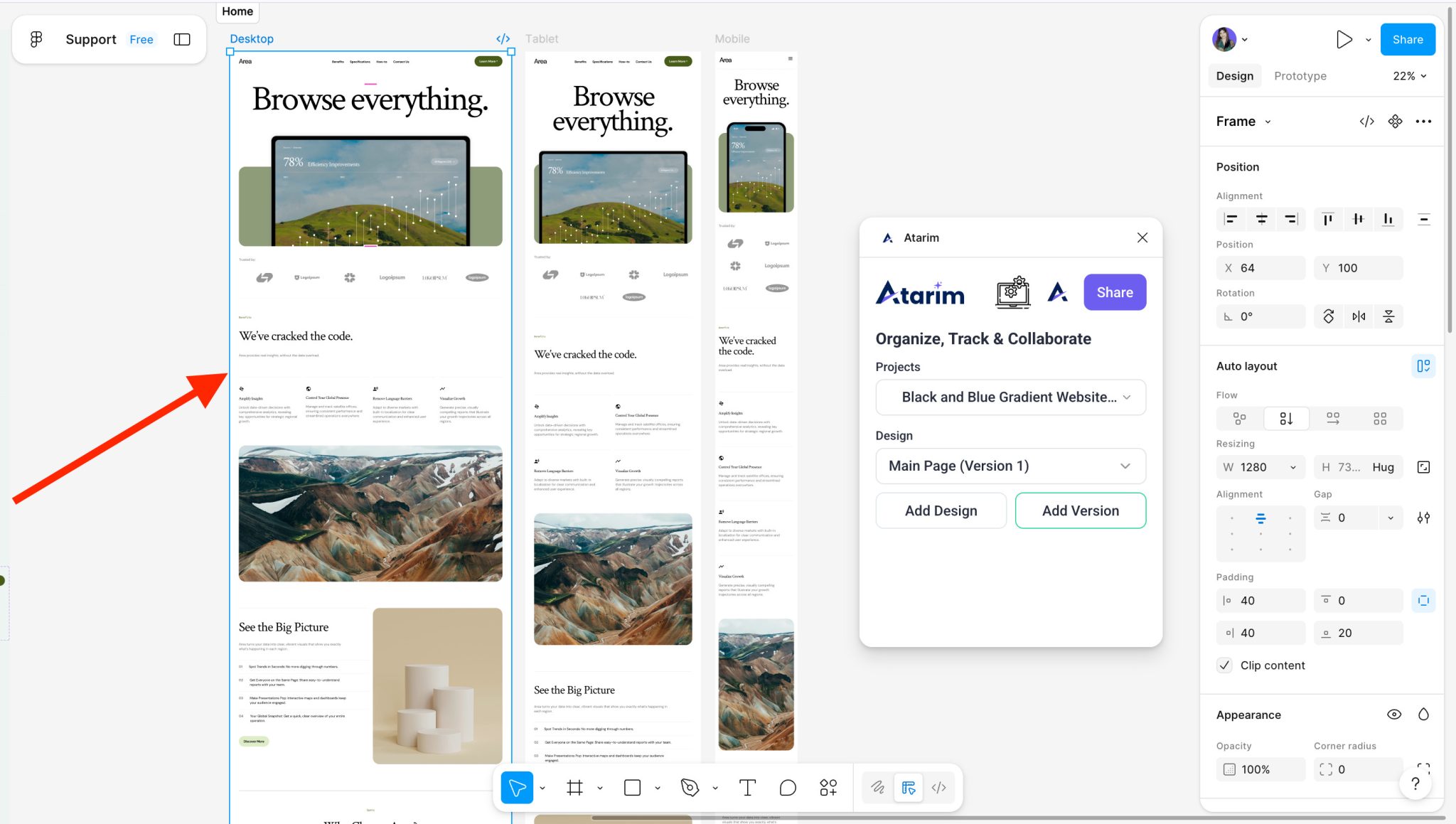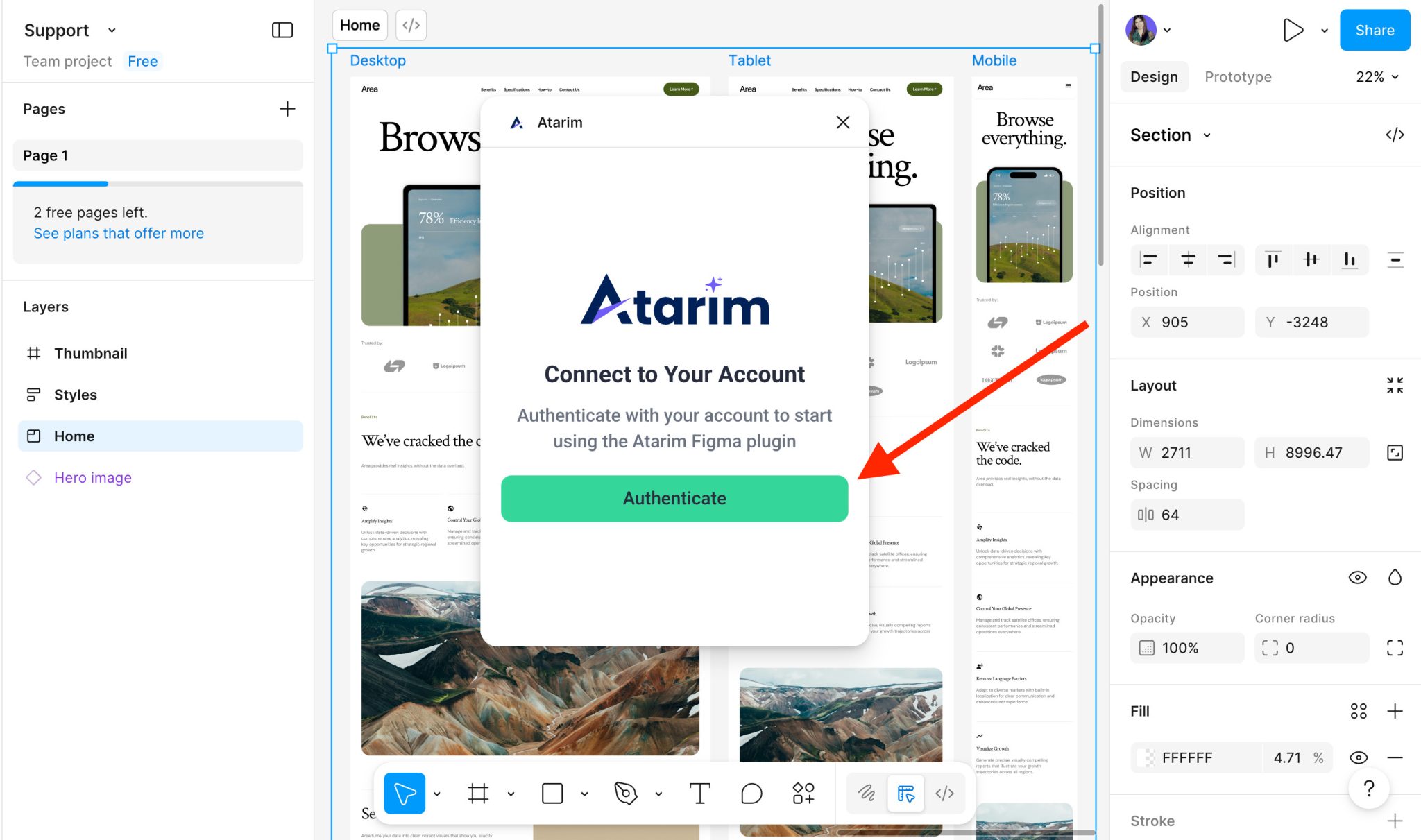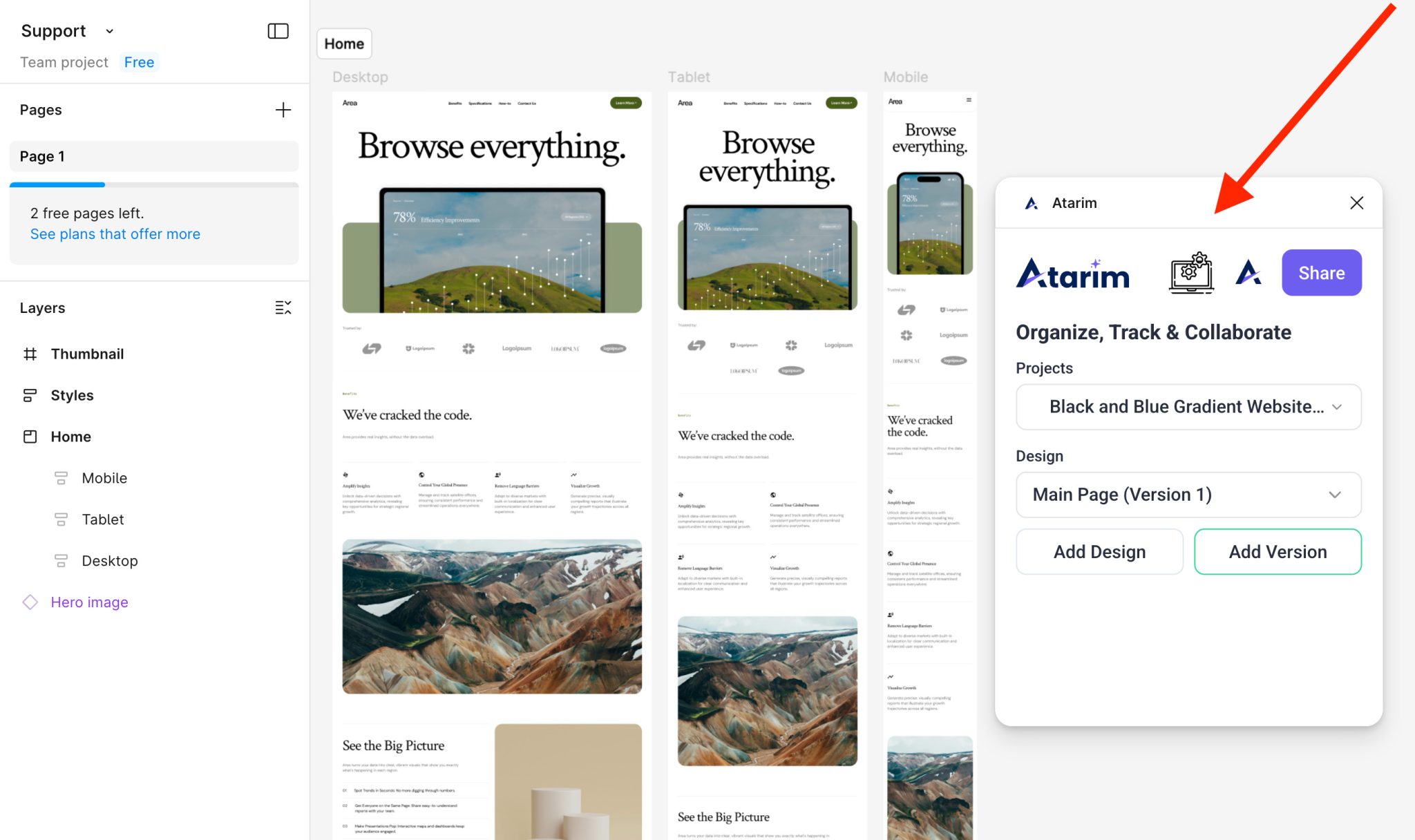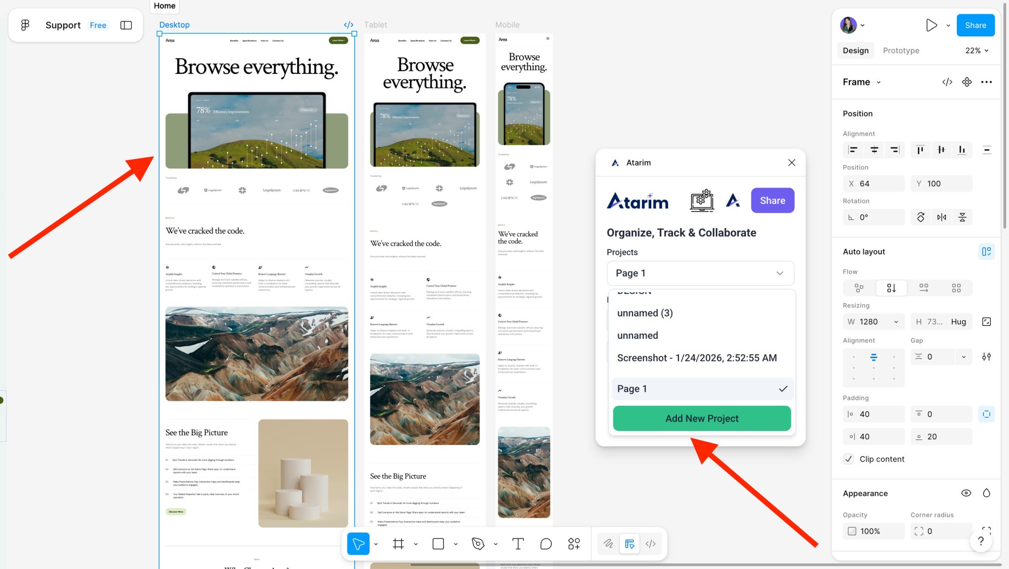 Easily send your Figma designs into Atarim for visual feedback and collaboration with your team or clients. This guide explains how to select frames or entire canvases and push them into your workspace in just a few clicks — no exporting or slicing needed.