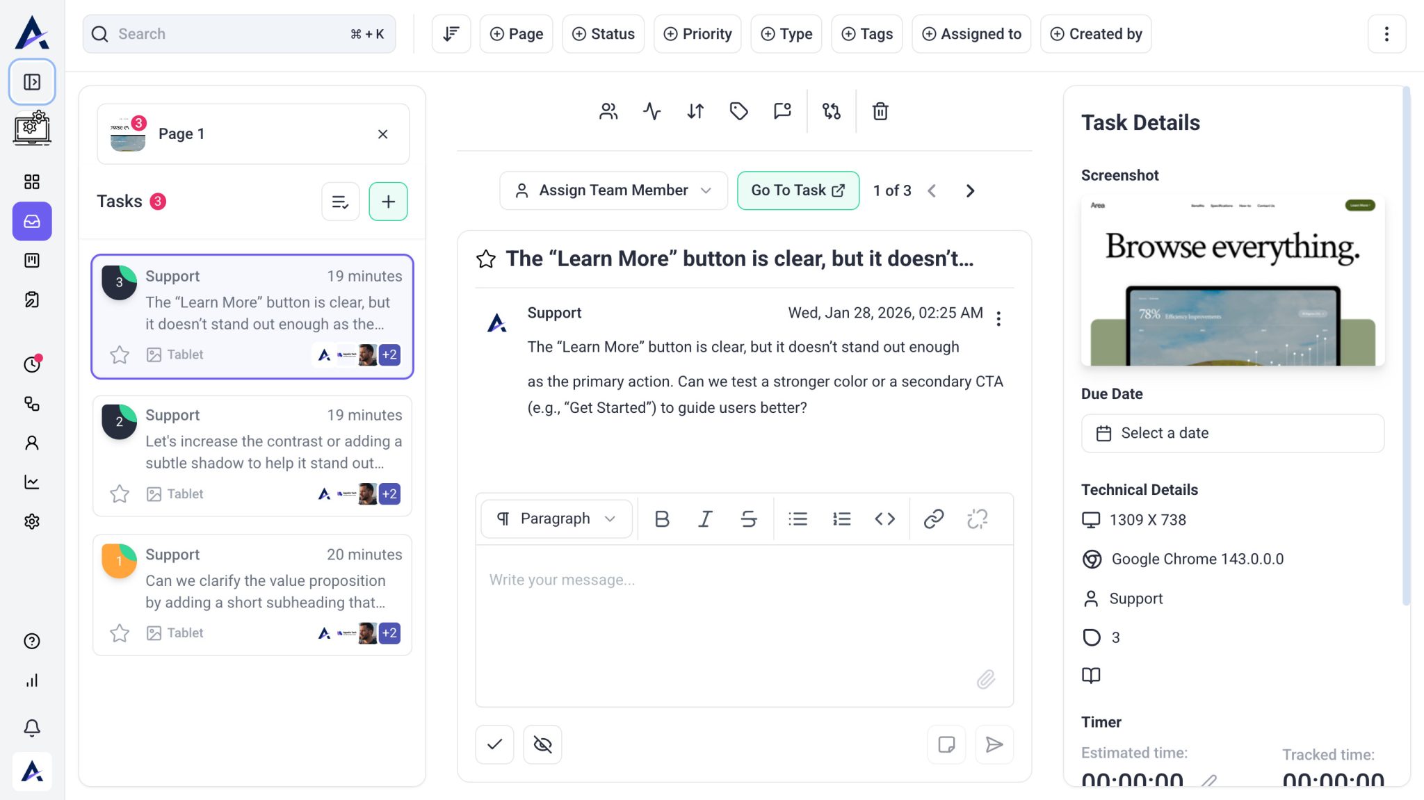 Note: Atarim’s Inbox and Boards let you see all tasks, from any design or website — even across workspaces.