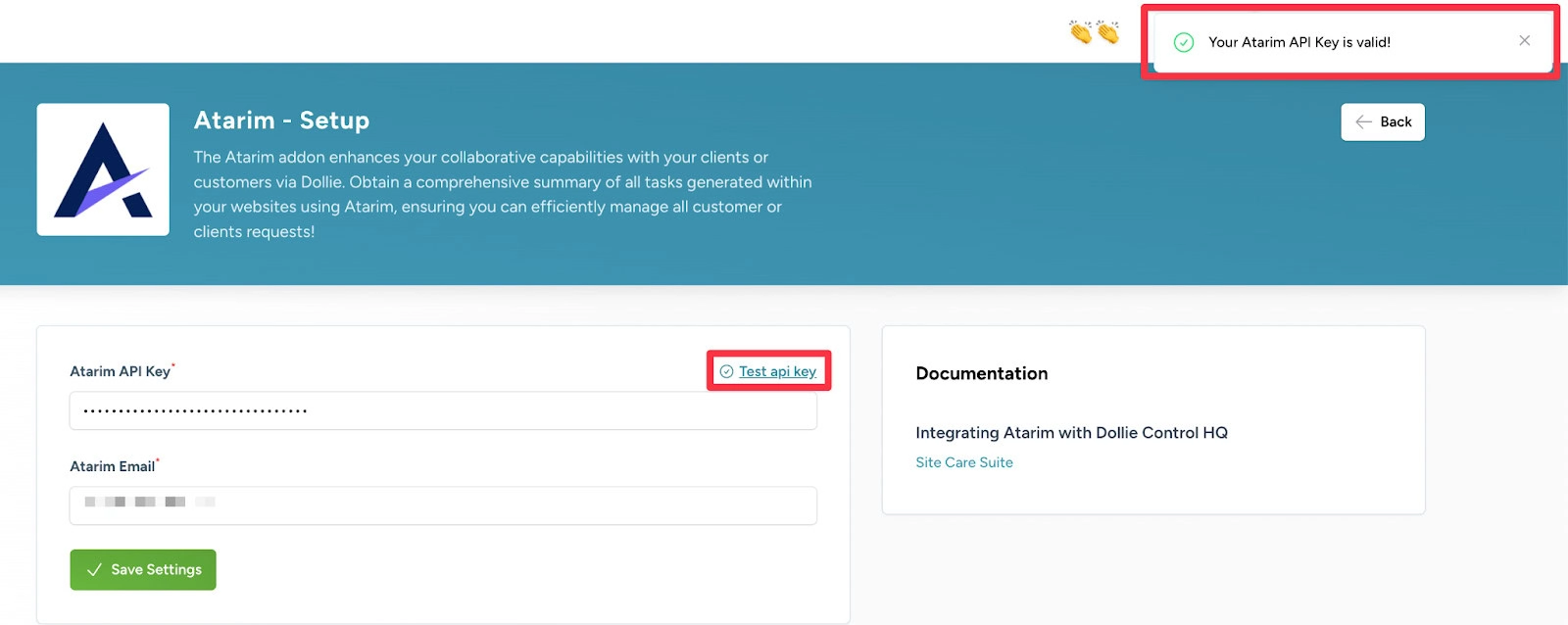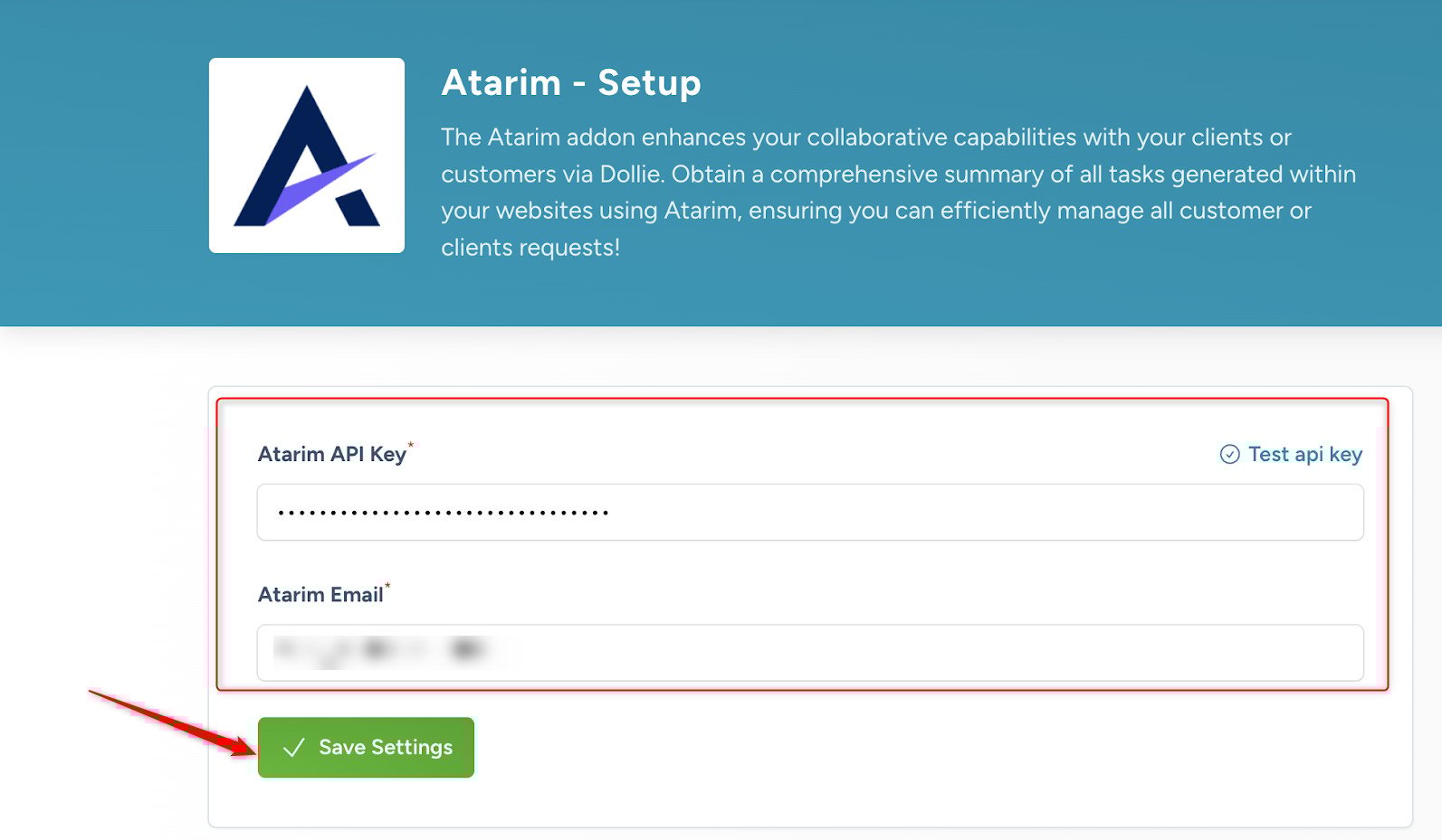 - Test the API connection after setup to ensure seamless communication between Atarim and Dollie.