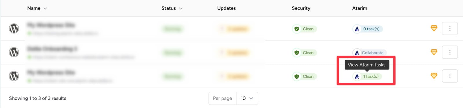 - Access the Atarim Task Panel in Dollie to quickly view and manage website tasks without leaving the platform.