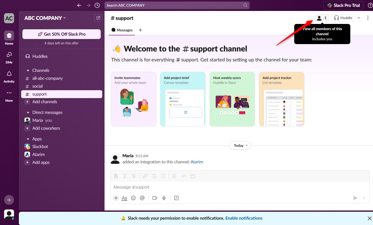 - Add Atarim to any Slack channel (not just the one you connected during setup)