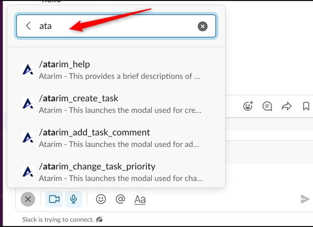 Note: Commands must be used in a Slack channel where the Atarim app is already installed.