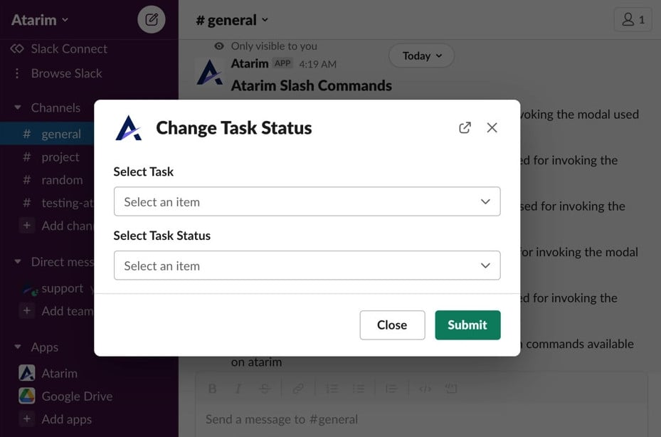 Connect Slack to Atarim and streamline your workflow with task notifications and actionable commands.