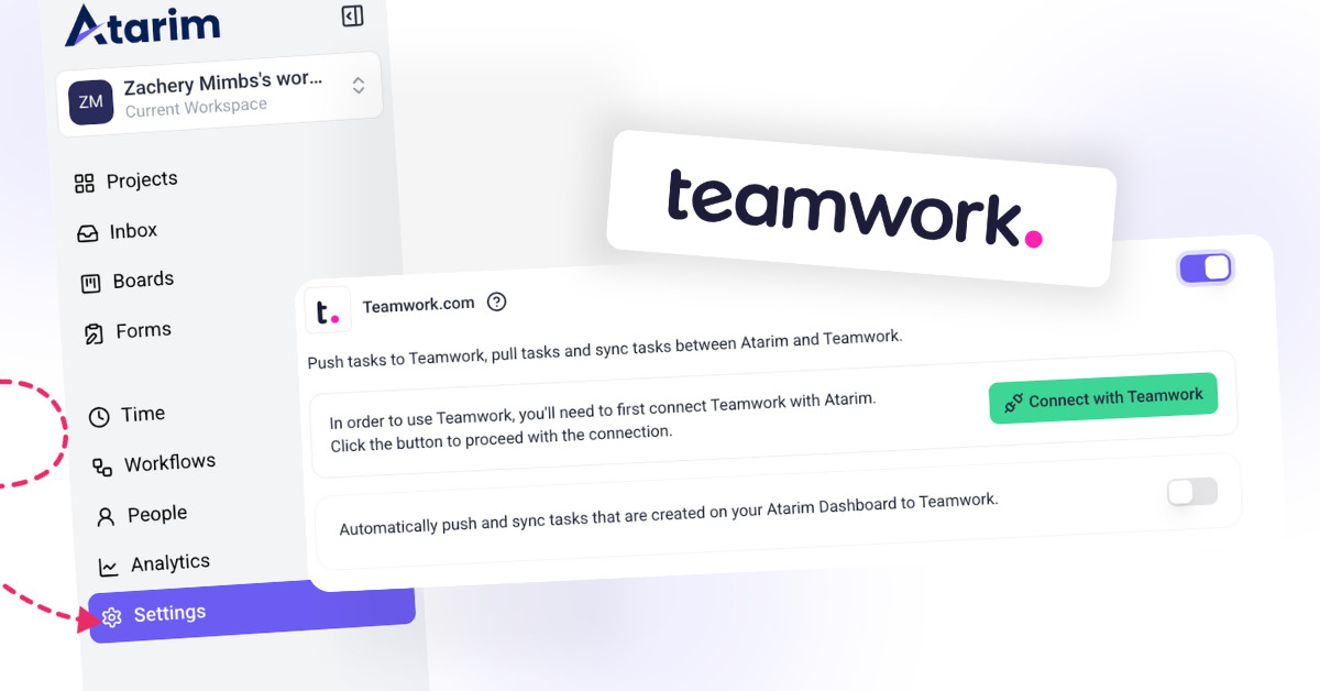 Only Admins and Workspace Owners can enable or disable the Teamwork integration and manage project mappings in Atarim. Standard users can still work with tasks, but cannot access integration settings.