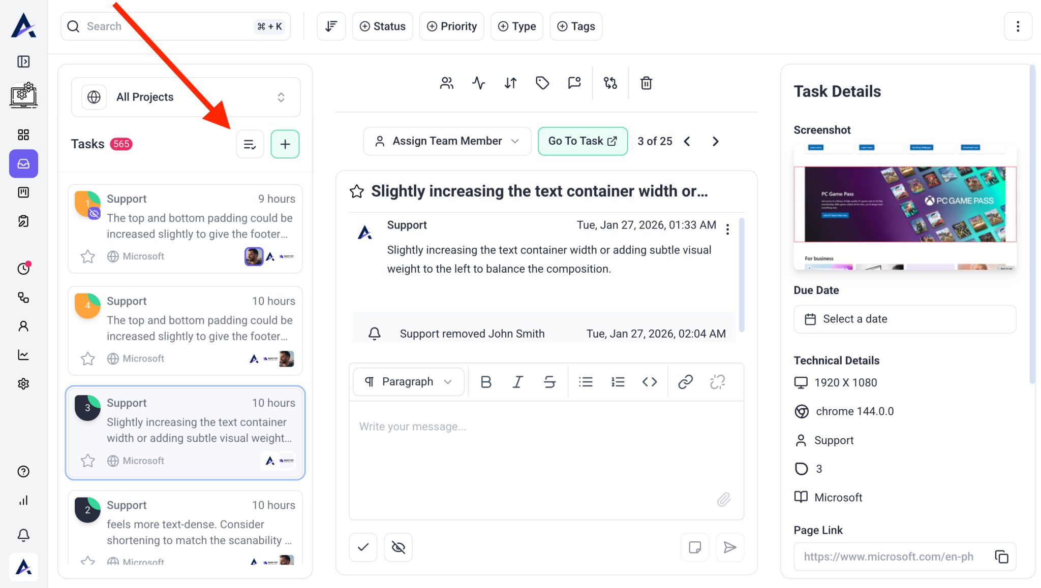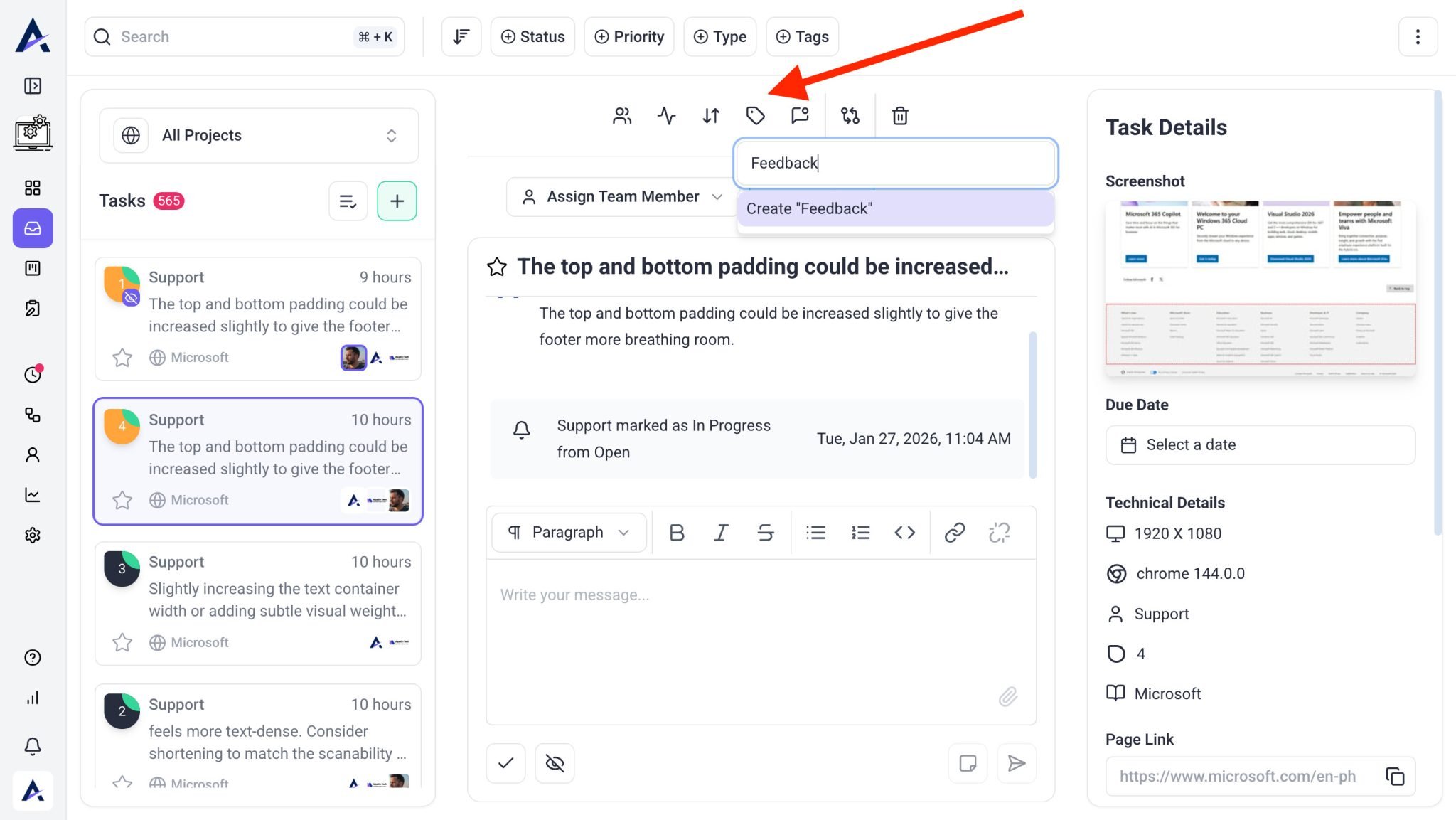 Tip: Use tags like Bug, Revision, or Client Feedback to make sorting and reporting easier.