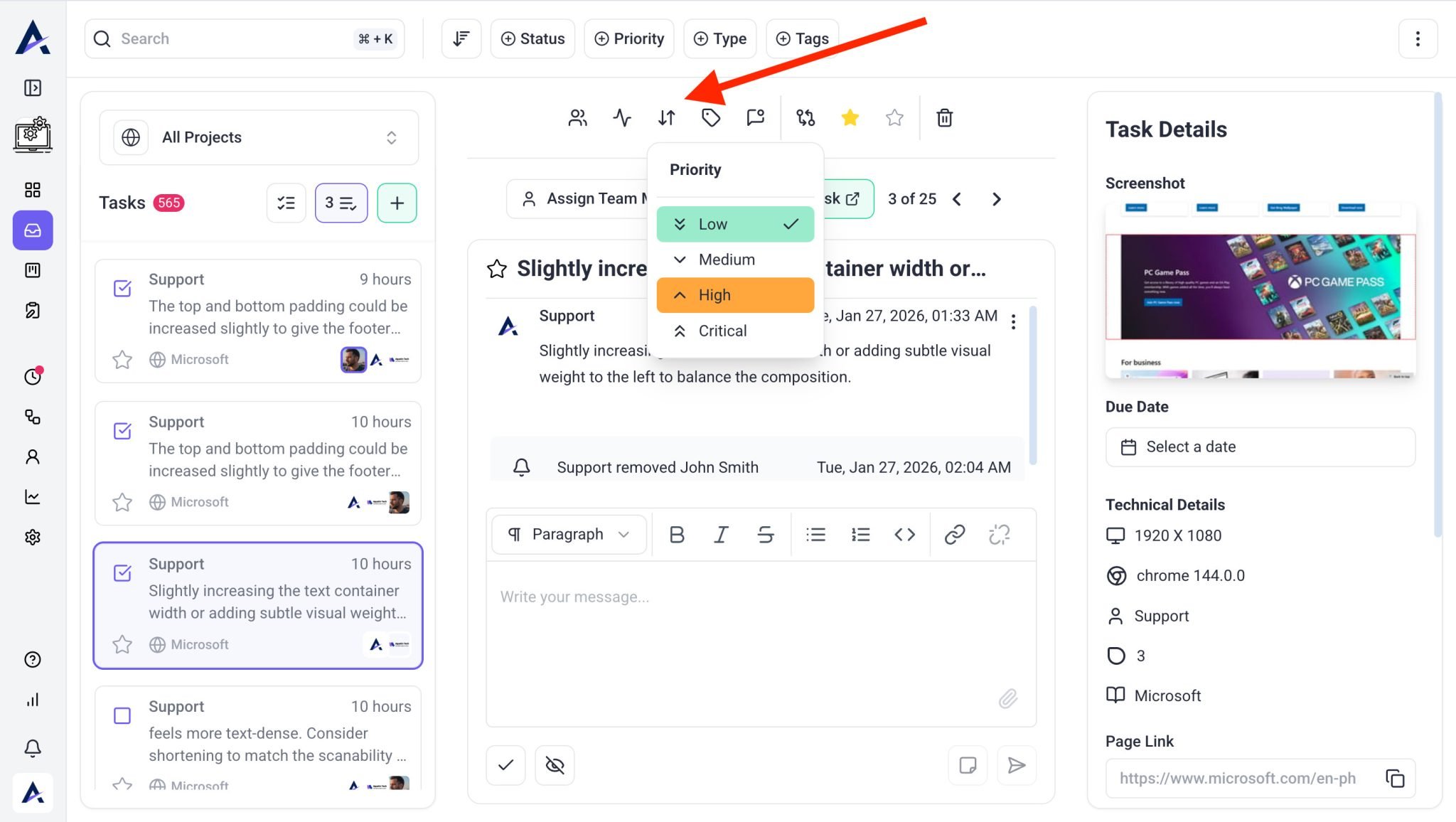 - Change Priority – Adjust urgency levels (e.g. Low, Medium, High, Critical) in one click.