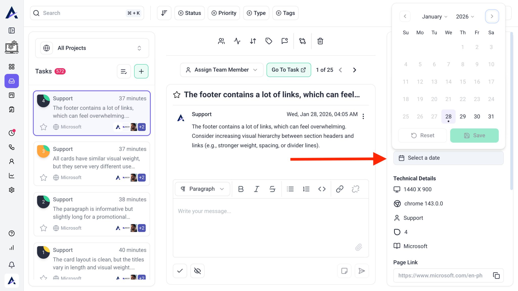 Adding a due date helps your team stay on track and ensures tasks are completed on time. You can assign or update a due date from any task view.