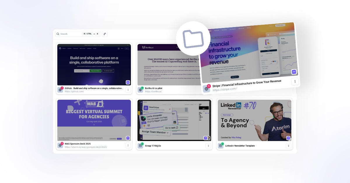 Atarim’s Folders feature offers an intuitive way to categorize and organize projects within a workspace. By grouping related projects, folders simplify project management and improve team collaboration, especially for agencies handling multiple clients or departments.