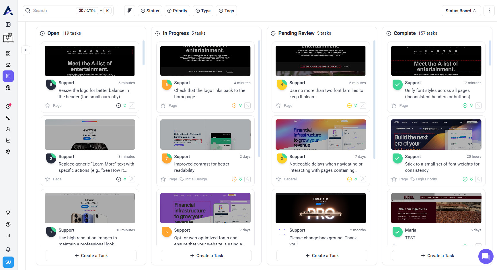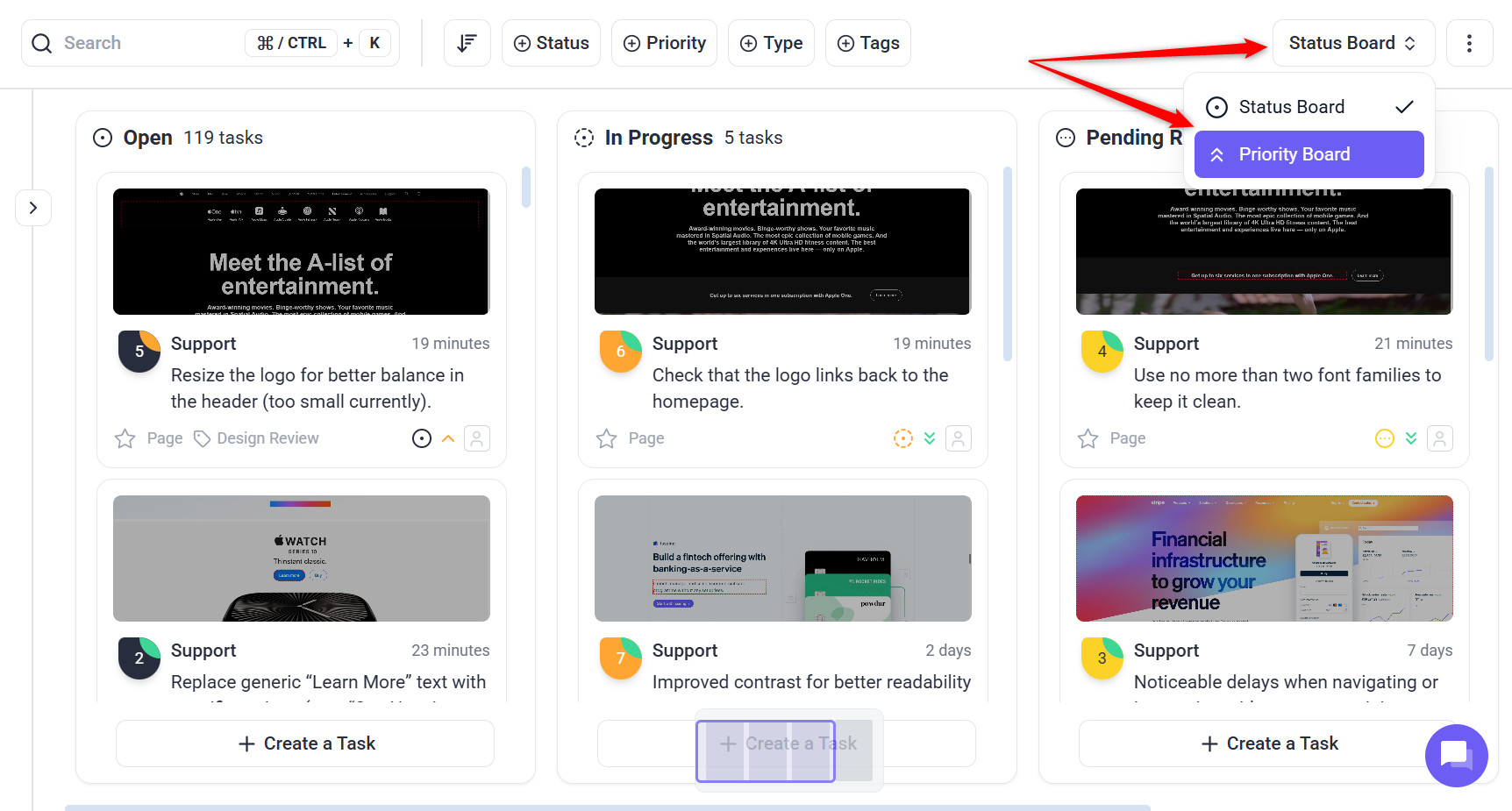 • Monitor tasks on the Kanban Board for a quick overview of priorities.