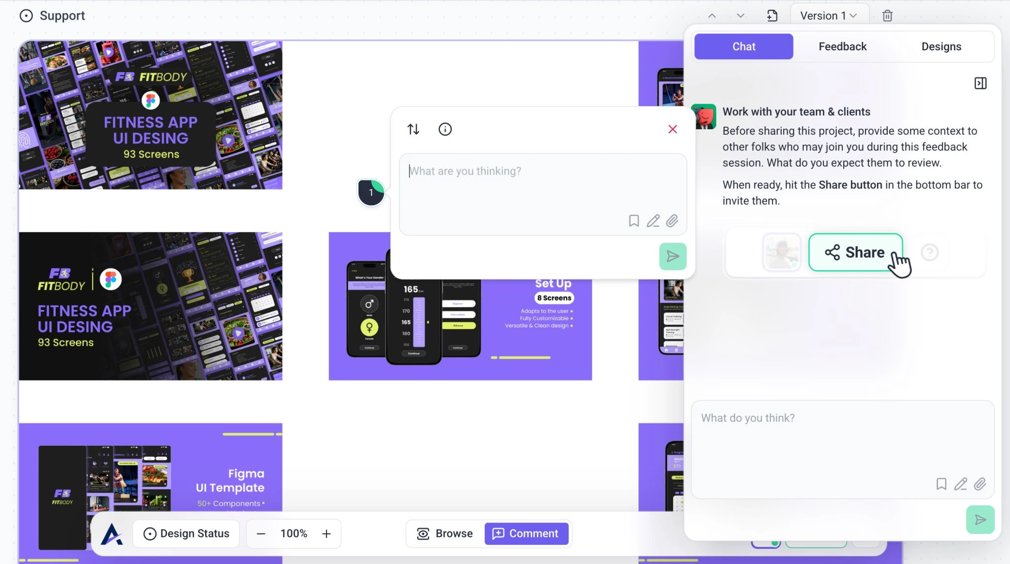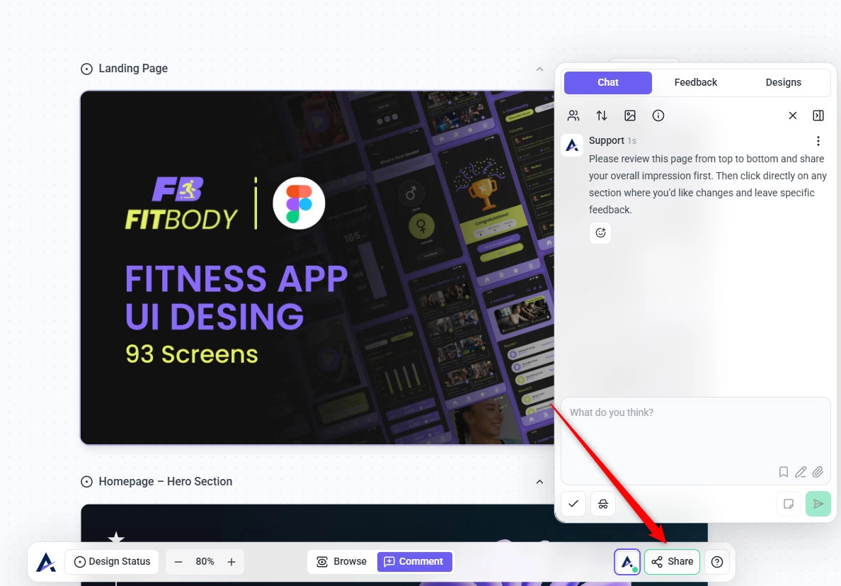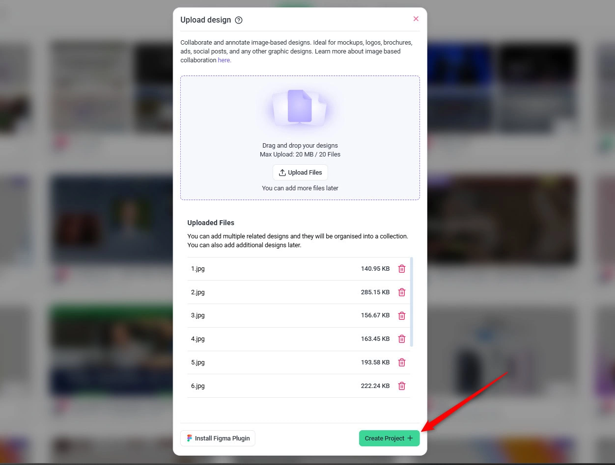 This creates a design project where team members, clients, and stakeholders can leave visual feedback directly on the design.