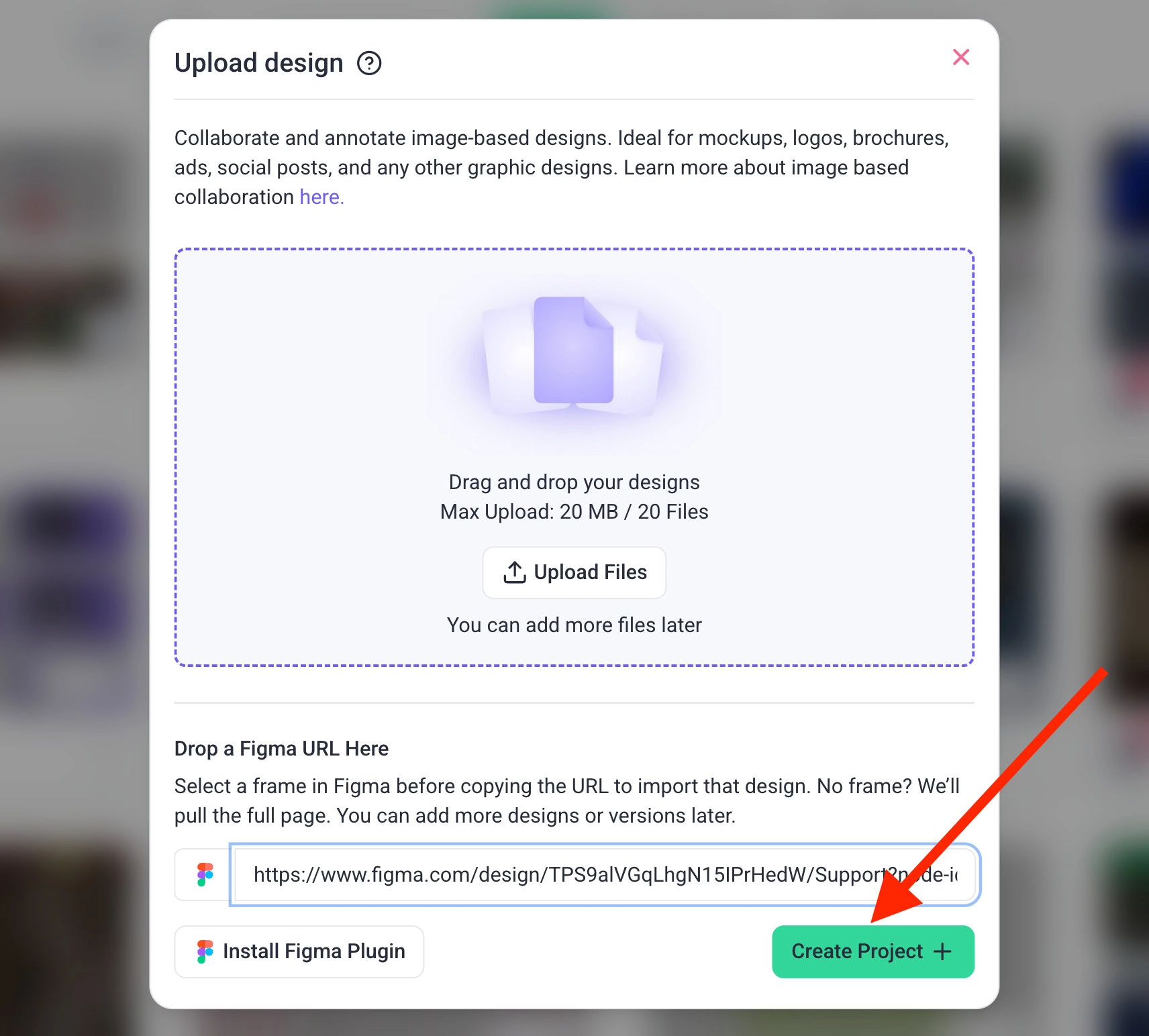 If you already have a design open in Figma, you can paste the Figma URL directly into Atarim to quickly import the design.