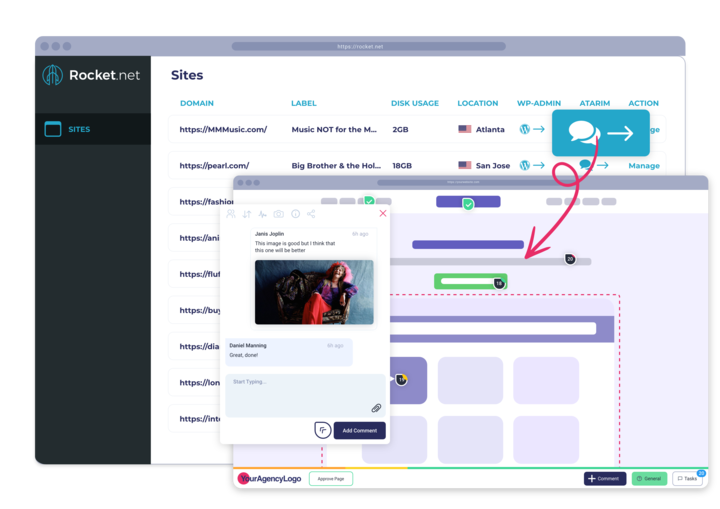 Combine Rocket.net and Atarim to create a full solution for your Digital Agency. Manage your client and team collaboration, create staging enviroments with one click and manage the hosting of your websites, all from one platform.